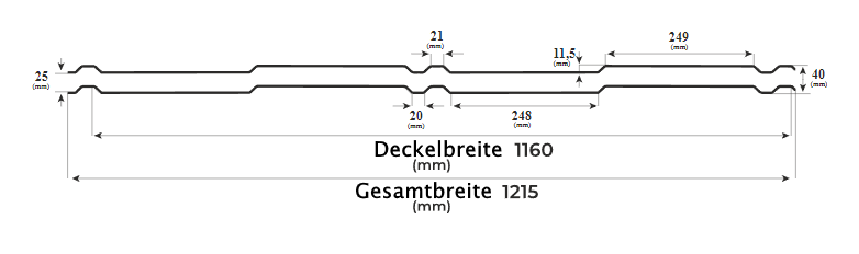 | Blechdicke (mm) | 0,45 - 0,50 - 0,60 | |